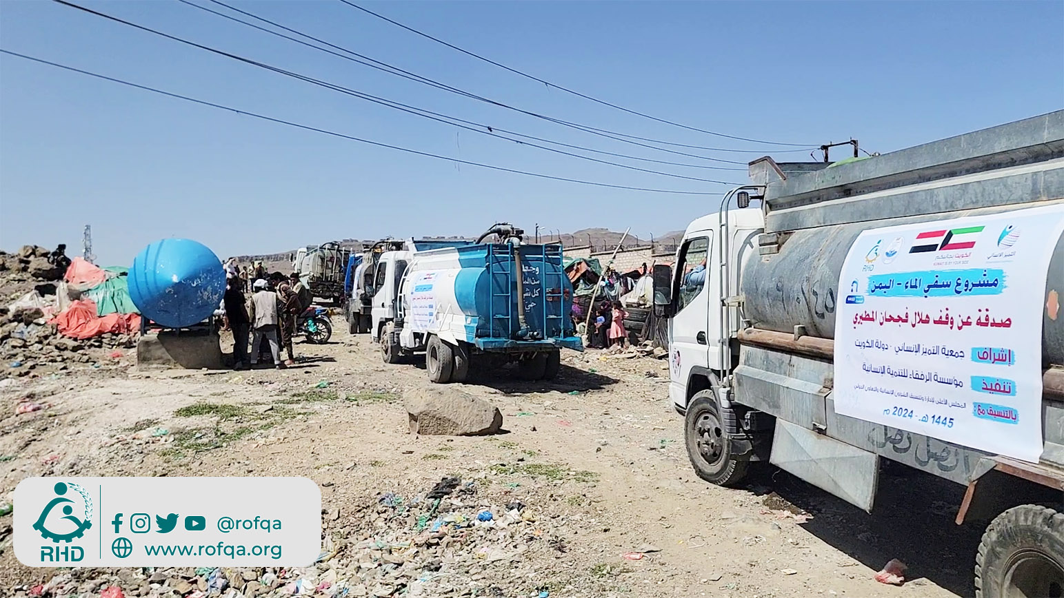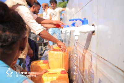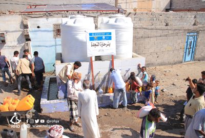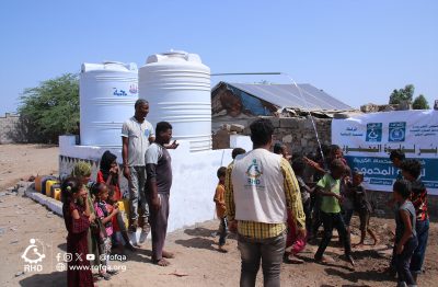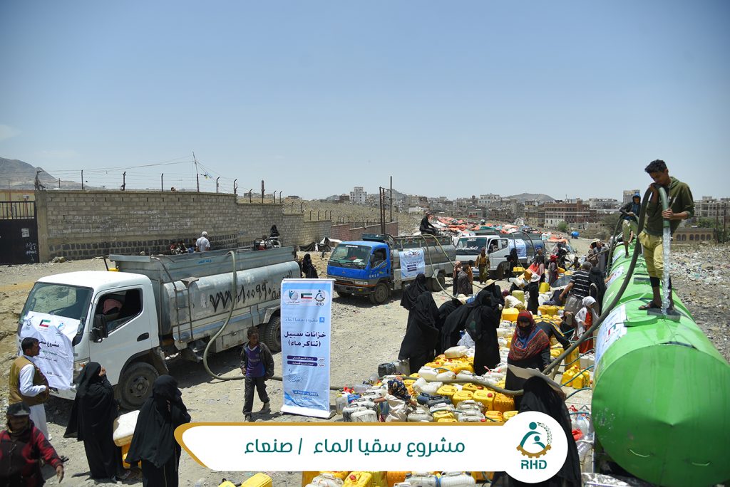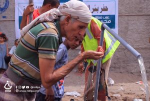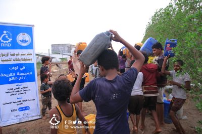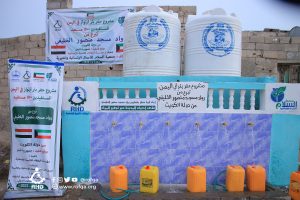 برنامج المياه والإصحاح البيئي (توزيع المياه للعديد من الأحياء ومخيمات النازحين ، وحفر الآبار الارتوازية والسطحية وتشغيل منظومات المياه بالطاقة الشمسية)
