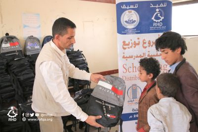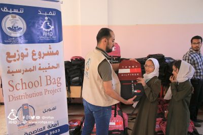 نفذت الرفقاء للتنمية الإنسانية مشروع توزيع الحقيبة المدرسية لأبناء الأسر الفقيرة والمحتاجة والتي تحتوي على جميع الأدوات المدرسية المطلوبة من دفاتر وأقلام وكراسات في مدرستي السلال والحسين بن علي للمساهمة في تخفيف العبء المادي على الأسر وتشجيع الطلاب على التعليم.