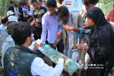 برنامج الأمن الغذائي – نفذت الرفقاء للتنمية الإنسانية حملة إغاثية متكاملة في مديرية الخبت محافظة المحويت